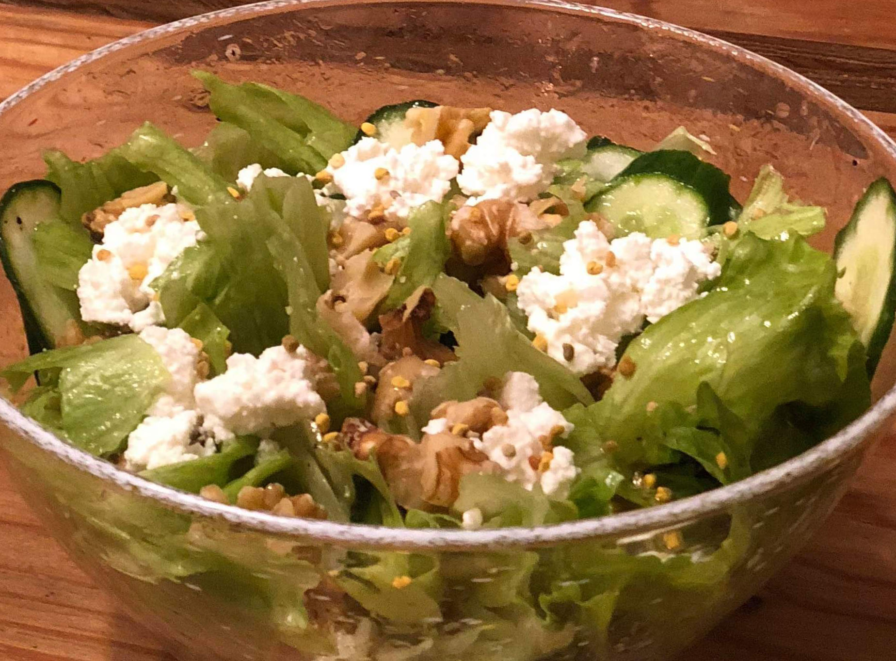 1.レタス、キュウリ、トマトをお好みの大きさに切り、オリーブオイルと白ワインビネガー塩、胡椒で和える。