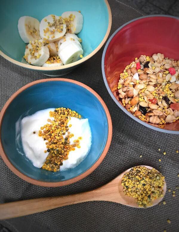 ビーポーレンは適量をそのままスプーンで食べるのが基本ですが、ヨーグルトやスムージー、サラダなどのトッピングにしたり、紅茶に入れたりすることもおすすめです。